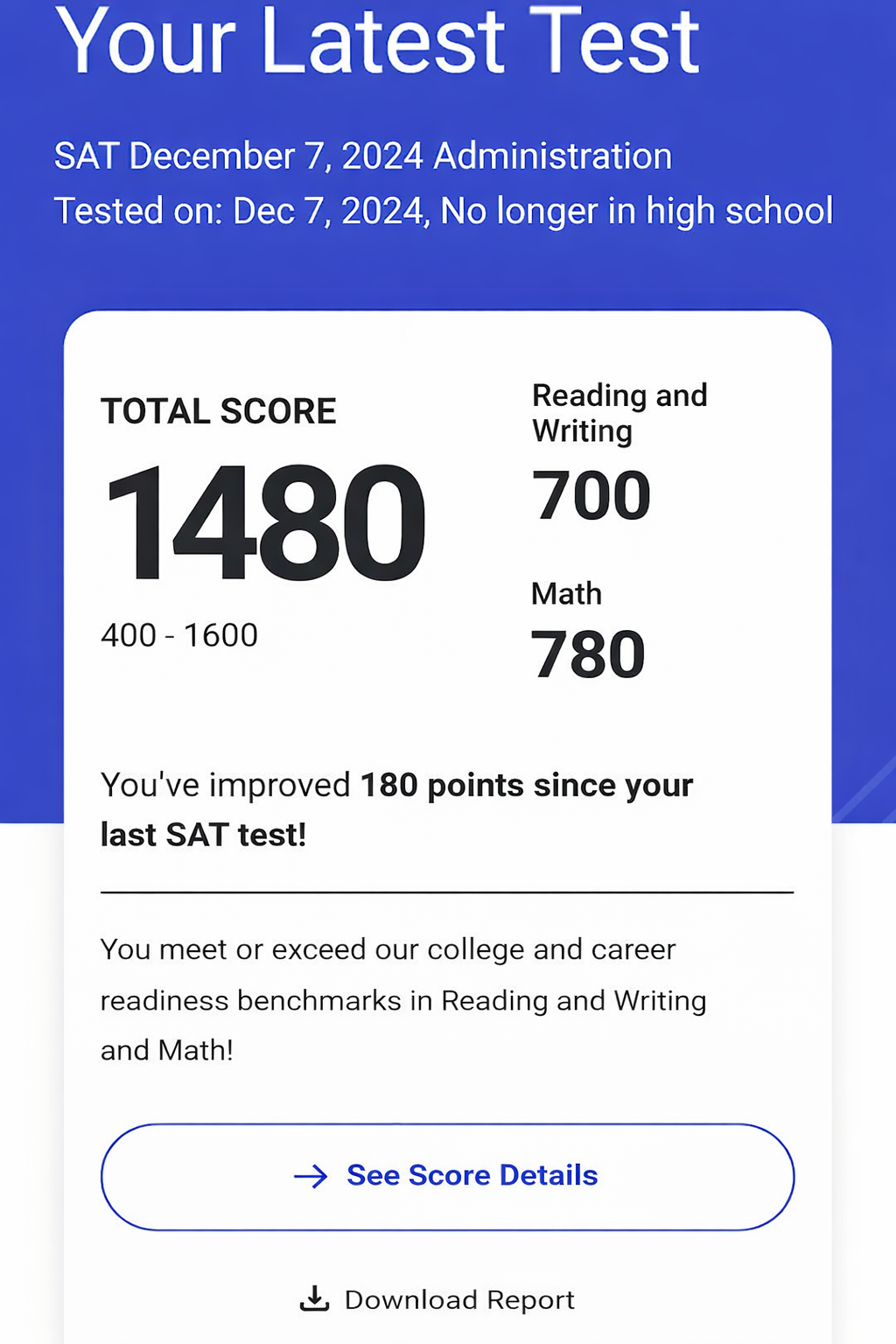 “I got *770* on the real SAT. I literally owe you my scholarship.”